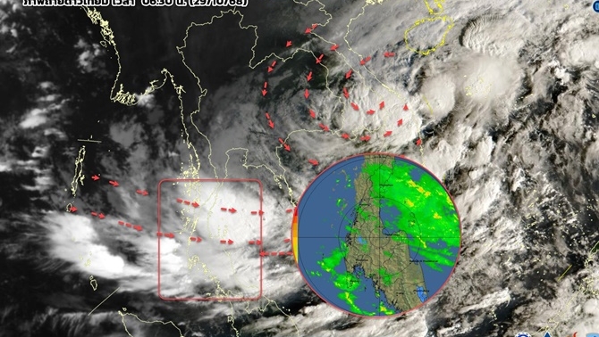 กลุ่มฝนปกคลุม ชุมพร สุราษฎรธานี-กทม.ฝน10%