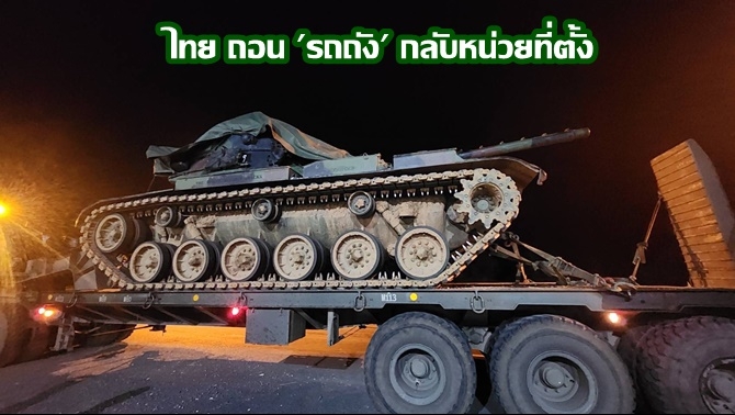 เปิดภาพ กองทัพไทย ถอนรถถังกลับหน่วยที่ตั้ง ตามข้อตกลงสันติภาพ ถอนอาวุธหนักชายแดน