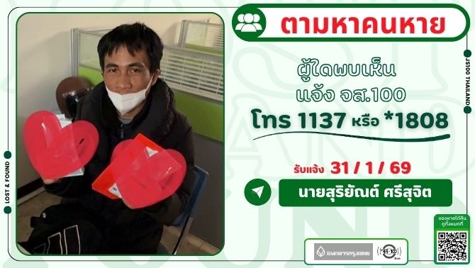 พบแมวพลัดหลง ในซอยสงวนสุข ใกล้สี่แยกราชวัตร เขตดุสิต ผู้ใดเป็นเจ้าของแจ้ง JS100 โทร *1808 หรือ 1137