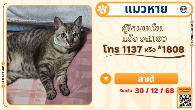พบคนพลัดหลง ที่บริเวณสวนทวีกาญจนาภิเษก เขตทวีวัฒนา ผู้ใดเป็นญาติแจ้ง JS100 โทร *1808 หรือ 1137
