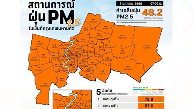 เช้านี้คุณภาพอากาศ กทม. อยู่ในเกณฑ์เริ่มมีผลกระทบต่อสุขภาพ