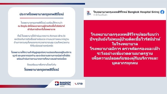 รพ.กรุงเทพสิริโรจน์ ยืนยันไม่มีชาวอินเดีย 7 ราย ติดไวรัสนิปาห์เข้ารับการรักษา