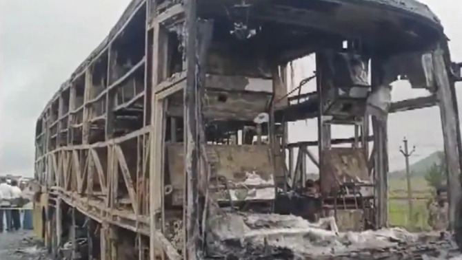 ไฟไหม้รถเมล์ ในรัฐอานธรประเทศ อินเดีย ดับ 19 ราย