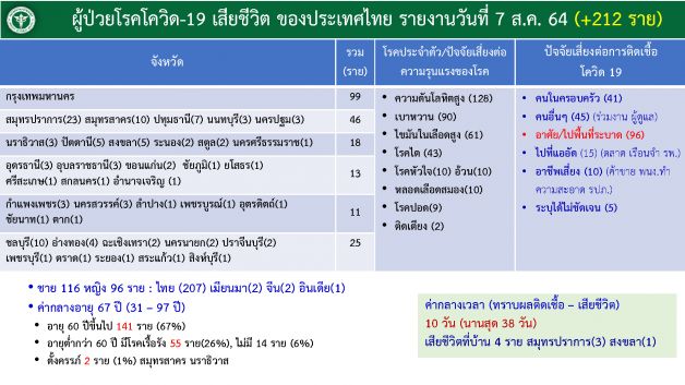 ศูนย์ข้อมูลโควิด-19 รายงานสถานการณ์วันเสาร์ที่ 7 สิงหาคม 2564 เวลา 12.30 น.