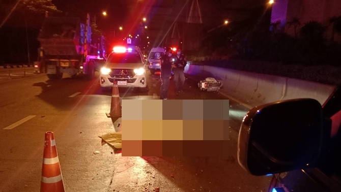 ร.ต.อ.ไชยา บัวมาศ รองสารวัตรสอบสวน สน.หัวหมาก เปิดเผยว่าจากการสอบถามคนขับรถเก๋ง และรถเทรลเลอร์ทราบว่า รถจักรยานยนต์ขับขี่มาตามทาง พยายามที่จะแซงรถเก๋ง แต่เกิดเสียหลักล้ม จังหวะนั้นรถเทรลเลอร์ขับตามมาพยายามที่จะหักหลบ แต่ไม่ทัน ทับร่างผู้เสียชีวิต ทราบชื่อ นายชาญณรงค์ สอนชะอุ่ม อายุ 55 ปี ศพนำส่งนิติเวช รพ.ตำรวจแล้ว
