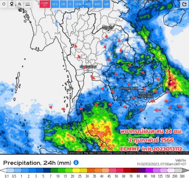 เริ่มต้นเดือน ก.พ.66 อากาศเริ่มอุ่นขึ้น กรมอุตุนิยมวิทยา ประเมินสภาพอากาศล่วงหน้า 1-10 ก.พ.66 พยากรณ์ฝนสะสมรายวัน (ทุกๆ 24 ชม.) 10 วันล่วงหน้า ระหว่าง 1-10 ก.พ.66 อัพเดท 2023013112 จากศูนย์พยากรณ์อากาศระยะกลางยุโรป (ECMWF)