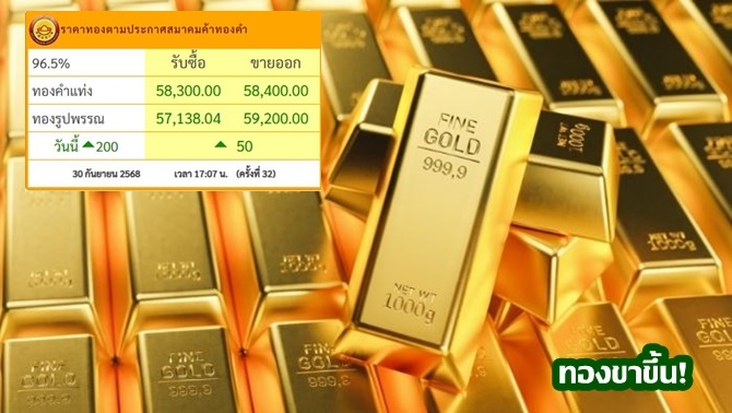 - ทองคำแท่ง 96.5% รับซื้อบาททองคำละ 58,300 บาท ขายออกบาททองคำละ 58,400 บาท