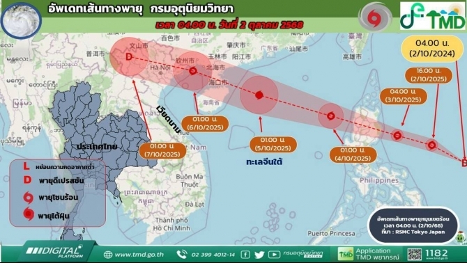 สำหรับพายุดีเปรสชันในมหาสมุทรแปซิฟิก (ทางตะวันออกของประเทศฟิลิปปินส์) มีแนวโน้มจะทวีกำลังแรงขึ้นเป็นพายุโซนร้อนได้ (เนื่องจากพายุนี้ยังอยู่ในทะเล) จะเคลื่อนตัวทางตะวันตกเฉียงเหนือผ่านเกาะลูซอล ประเทศฟิลิปปินส์ ลงสู่ทะเลจีนใต้ตอนบน และจะเคลื่อนตัวไปทางเกาะไหลหลำ และขึ้นฝั่งที่ประเทศจีนตอนใต้หรือประเทศเวียดนามตอนบน พายุนี้จะไม่เคลื่อนเข้าสู่ประเทศไทย ยังไม่ควรตื่นตระหนก ติดตามข่าวพยากรณ์อากาศเป็นระยะๆ (ข้อมูลยังมีการเปลี่ยนแปลง ใช้ข้อมูลนี้เพื่อเป็นแนวทางในการเฝ้าระวัง ติดตามสภาพอากาศ ไม่ตื่นตระหนกกับข่าวลือที่เกิดขึ้นในขณะนี้
