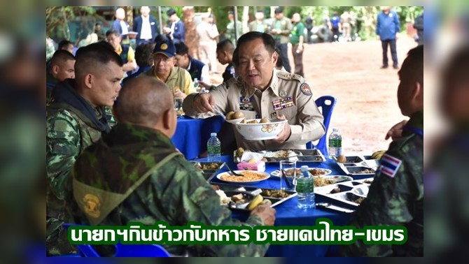 นายอนุทิน ชาญวีรกูล นายกรัฐมนตรี และรัฐมนตรีว่าการกระทรวงมหาดไทย เดินทางลงพื้นที่อำเภอพนมดงรัก จังหวัดสุรินทร์ เพื่อตรวจเยี่ยมและให้กำลังใจเจ้าหน้าที่ทหารที่ปฏิบัติหน้าที่รักษาความสงบเรียบร้อยตามแนวชายแดนไทย–กัมพูชา ณ ฐานปฏิบัติการสามแยก กองพันทหารราบที่ 21 หน่วยเฉพาะกิจที่ 2 กองกำลังสุรนารี นายกรัฐมนตรีได้ร่วมรับประทานอาหารกลางวันกับกำลังพล โดยได้ตักไข่พะโล้ใส่จานให้กับนายทหารที่นั่งร่วมโต๊ะ พร้อมพูดคุยสอบถามถึงความเป็นอยู่และการปฏิบัติหน้าที่ด้วยความห่วงใย