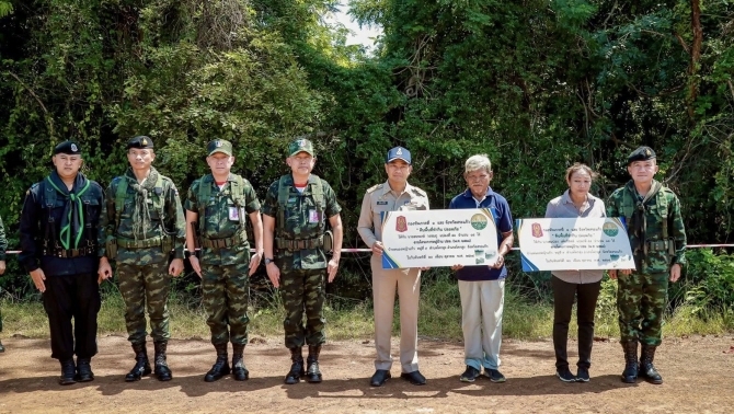 นอกจากนี้ แม่ทัพภาคที่ 1/ผบ.ศปก.ทภ.1 และคณะ ได้เดินทางไปยังบ้านหนองหญ้าแก้ว เพื่อติดตามการเคลียร์พื้นที่ปลอดภัย ร่วมกับ ผู้ว่าราชการจังหวัดสระแก้ว และได้ส่งมอบพื้นที่ทำกินปลอดภัยให้กับ นางสมปอง เพ็ชรจิตต์ ที่ดินทำกินแปลงที่ 55 จำนวน 14 ไร่ และมอบให้นายสมพงษ์ วงชมภู ที่ดินทำกินแปลงที่ 56 จำนวน 14 ไร่