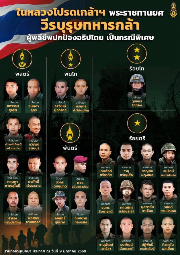 17. พลทหารวายุ ขวัญเสือ เป็น ร้อยตรี ตั้งแต่วันที่ 9 ธันวาคม 2568