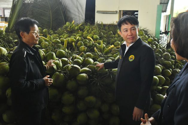 อธิบดีกรมส่งเสริมสหกรณ์ เปิดเผยว่า การรวบรวมผลผลิตมะพร้าวน้ำหอมของเกษตรกรในพื้นที่จังหวัดสมุทรสาคร ขณะนี้พบว่าเกษตรกรชาวสวนมะพร้าวกำลังเผชิญปัญหาผลผลิตตกต่ำอย่างหนัก เมื่อเทียบกับเดือนกุมภาพันธ์ 2568 ราคามะพร้าวหน้าสวนเฉลี่ยลูกละ 23 - 28 บาท แต่ปัจจุบันราคาที่เกษตรกรขายหน้าสวนลดลงเหลือ ลูกละ 2 บาท กรมส่งเสริมสหกรณ์จึงหาแนวทางให้ความช่วยเหลือในเบื้องต้นเพื่อบรรเทาปัญหาและยกระดับราคาในระยะเร่งด่วน โดยใช้กลไกตลาดของเครือข่ายสหกรณ์เข้ามาช่วยแก้ปัญหาให้กับเกษตรกรชาวสวนมะพร้าว ในจังหวัดสมุทรสาครและจังหวัดราชบุรี โดยมีเป้าหมายในการรวบรวมทั้ง 2 จังหวัด 1,000,000 ลูก และมีแผนกระจายผลผลิตมะพร้าวไปยังเครือข่ายสหกรณ์ในภาคตะวันออกเฉียงเหนือ 30,000 ลูก ซึ่งในวันนี้จะมีการปล่อยรถบรรทุกมะพร้าวน้ำหอมไปตลาดปลายทางที่จังหวัดร้อยเอ็ด โดยสหกรณ์การเกษตรเกษตรวิสัย จำกัด จังหวัดมหาสารคาม โดยสหกรณ์การเกษตรบรบือ จำกัด และจังหวัดยโสธร โดยสหกรณ์การเกษตรกุดชุม จำกัด สั่งซื้อจากสหกรณ์การเกษตรบ้านแพ้ว จำกัด จำนวน 20,000 ลูก ขณะที่สหกรณ์ต้นทางที่รวบรวมมะพร้าวน้ำหอมรับซื้อผลผลิตจากสมาชิกในราคาลูกละ 5 บาท และส่งขายให้เครือข่ายสหกรณ์ตลาดปลายทาง ลูกละ 6-7 บาท