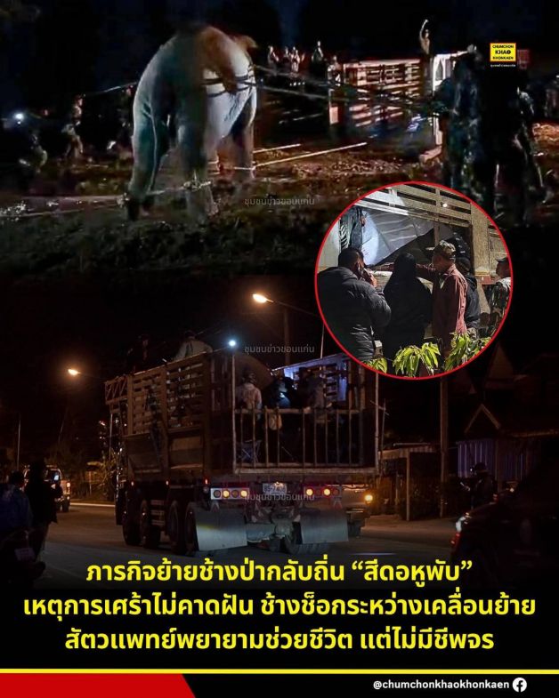เพจ “ลุงเกรียงหมีแบกกล้อง” ซึ่งเป็นหนึ่งในผู้ติดตามและร่วมสังเกตการณ์กระบวนการเคลื่อนย้ายช้างจากอุทยานแห่งชาติภูเวียง จังหวัดขอนแก่น โดยเล่าถึงเหตุการณ์ก่อนเกิดการทรุดล้มว่า ขบวนการขนย้ายกำลังเดินทาง จนทำให้ขบวนรถ ย้อนกลับไปยังสำนักงานอุทยานแห่งชาติภูเวียง เพื่อดำเนินการตามขั้นตอนที่เหมาะสม