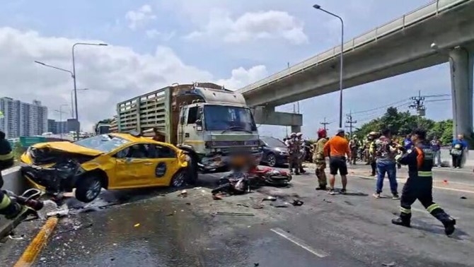 คนขับสิบล้อ เบรกแตก พุ่งชนยกระดับสวนเลียบ ดับ 1