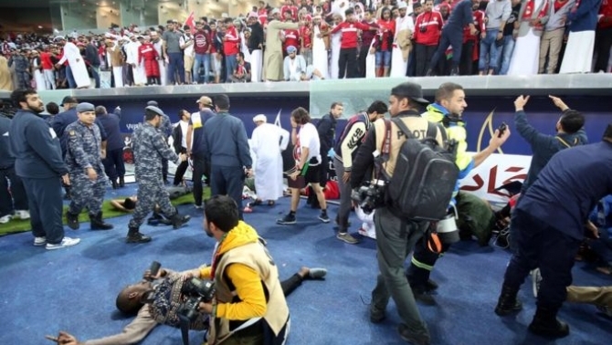 แฟนฟุตบอลในคูเวตหลายสิบคนได้รับบาดเจ็บหลังเกิดเหตุแผงกั้นที่เป็นกระจกพังลงมาระหว่างการเดินแถวเฉลิมฉลองที่สเตเดียมในคูเวต รายงานระบุว่าเหตุเกิดขณะแฟนฟุตบอลทีมโอมานพากันเข้าไปทักทายทีมโปรด เมื่อได้รับชัยชนะกีฬาอ่าวอาหรับครั้งที่23ในรอบสุดท้าย โดยทีมโอมานเอาชนะสหรัฐอาหรับเอมิเรดส์หรือยูเออี 5 ประตูต่อ 4 จากการยิงลูกโทษที่จาเบอร์อัลอาห์หมัดสเตเดียม ด้านสำนักข่าวคูนารายงานว่ากระจกแผงกั้นแตก เนื่องจากได้รับแรงกดดันจากคลื่นฝูงชน ผู้บาดเจ็บประมาณ 40 คนได้รับบาดเจ็บเพียงเล็กน้อย ด้านชี้ค จาเบอร์ อัล มูบารัค อัล ซาบาห์นายกรัฐมนตรีคูเวต เข้าเยี่ยมผู้ป่วยที่โรงพยาบาลแล้ว และทางการคูเวตกำลังสอบสวนเหตุการณ์ที่เกิดขึ้นอยู่