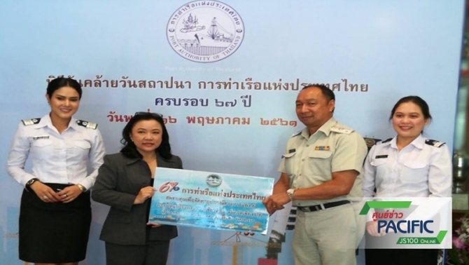 นายอภิชาติ พูลต่าย ผู้ช่วยผู้อำนวยการการท่าเรือแห่งประเทศไทย รับมอบเงินสนับสนุนกิจกรรมเพื่อสังคมจาก สถานีวิทยุ จส.100 โดย บริษัท แปซิฟิค คอร์ปอเรชั่น จำกัด เพื่อจัดหาอุปกรณ์ทางการแพทย์ให้กับ รพ.เชียงแสน จ.เชียงราย และ รพ.สต.บ้านหินช้าง จ.ระนอง เนื่องในวันคล้ายวันสถาปนาการท่าเรือ แห่งประเทศไทย ครบรอบ 67 ปี