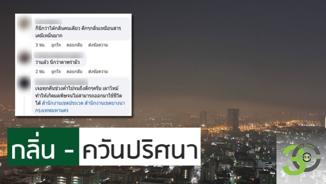 เมื่อช่วงกลางดึกที่ผ่านมา JS100 รับแจ้งจากประชาชนย่านเขตบางนา ลาดกระบัง ประเวศ กทม. ต่อเนื่องบริเวณสนามบินสุวรรณภูมิ จ.สมุทรปราการ พบกลุ่มควันลอยเหนือท้องฟ้าปกคลุมไปทั่ว โดยควันที่เห็นมีกลิ่นเหม็นคล้ายมีการเผาไหม้ จากการตรวจสอบไปยัง สถานีดับเพลิงต่างๆ ต่างก็ได้รับแจ้งเช่นกัน แต่ตรวจสอบแล้วยังไม่พบต้นเหตุ
