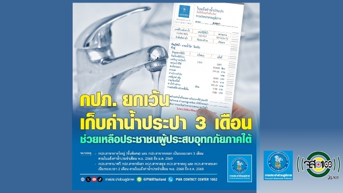 กปภ. ยกเว้นเก็บค่าน้ำประปาช่วยประชาชนผู้ประสบอุทกภัยภาคใต้