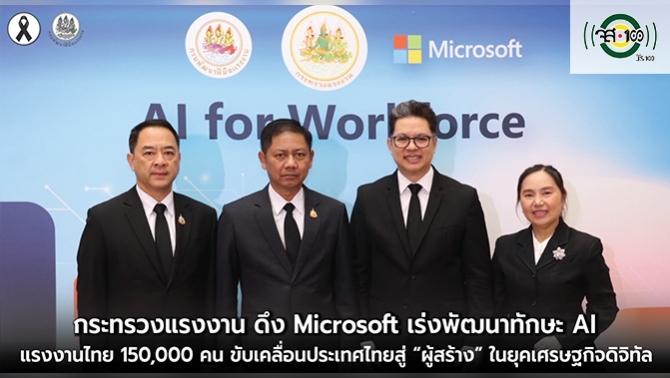 กระทรวงแรงงาน ดึง Microsoft เร่งพัฒนาทักษะ AI แรงงานไทย 150,000 คน ขับเคลื่อนประเทศไทยสู่ “ผู้สร้าง” ในยุคเศรษฐกิจดิจิทัล