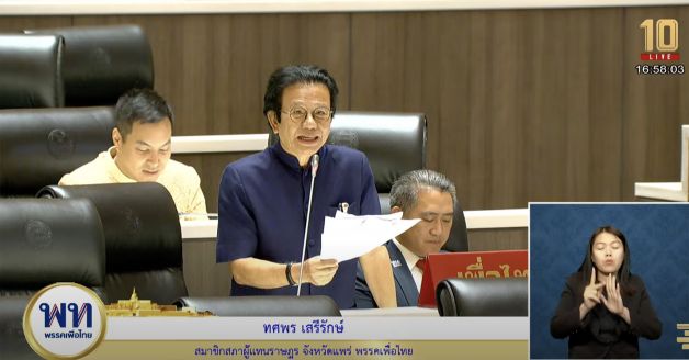 ด้าน นายแพทย์ทศพร เสรีรักษ์ สส.แพร่ พรรคเพื่อไทย ในฐานะประธานคณะกรรมาธิการการสาธารณสุข สภาผู้แทนราษฎร อภิปรายว่าตนได้รับการร้องเรียนเรื่องบุหรี่ไฟฟ้ามาตลอดเวลาเจอนักเรียนและผู้ปกครอง เคยไปเดินแถวสุขุมวิทพบการขายบุหรี่ไฟฟ้าเต็มไปหมด ตนเดินทางไปที่โรงพยาบาลสตึก จ.บุรีรัมย์ เยี่ยมนักเรียน ม.2 ที่สูบบุหรี่ไฟฟ้าแล้วปอดอักเสบต้องนอนโรงพยาบาลมีอยู่ 6-7 คน บางคนต้องส่งต่อไปโรงพยาบาลบุรีรัมย์ ไปที่สถานีตำรวจภูธรสตึกก็ทราบการจับบุหรี่ไฟฟ้ามีการขายอยู่ใกล้ใกล้โรงเรียน เด็กบางคนบอกว่าหัดสูบบุหรี่ไฟฟ้าเพราะเห็นพี่สูบเท่ห์ดีก็เลยไปขอสูบด้วย แล้วหลังจากนั้นก็ใช้วิธีหุ้นกับเพื่อนซื้อบุหรี่ไฟฟ้าแล้วก็มาแบ่งกันสูบ แอบสูบในห้องน้ำโรงเรียนบ้าง เลิกเรียนแล้วก็ไปแอบสูบที่บ้านเพื่อนบ้าง แล้วก็ซื้อน้ำกระท่อมไปดื่มด้วย คือน้ำกระท่อมกับบุหรี่ไฟฟ้ากลายเป็นของคู่กัน