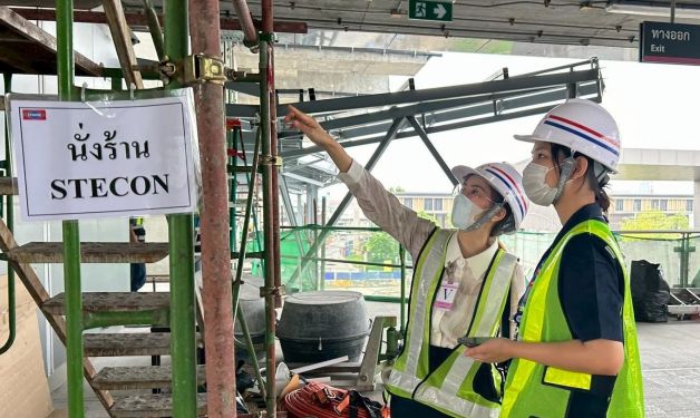 สปอ.รฟม. ตรวจเข้มความปลอดภัยในการทำงานก่อสร้าง โครงการรถไฟฟ้าสายสีชมพูส่วนต่อขยาย ช่วงสถานีศรีรัช – เมืองทองธานี
