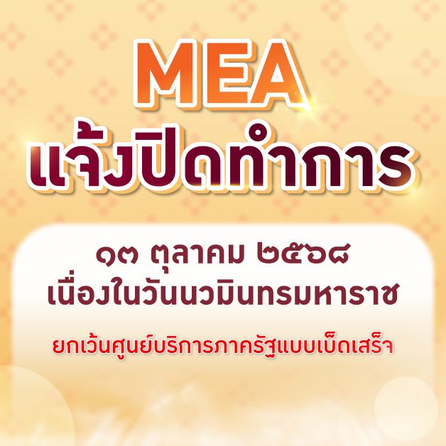 โดยที่ทำการ MEA อื่น ๆ จะเปิดทำการและให้บริการตามปกติ ในวันอังคารที่ 14 ตุลาคม 2568 ระหว่างเวลา 07.30 – 15.30 น.