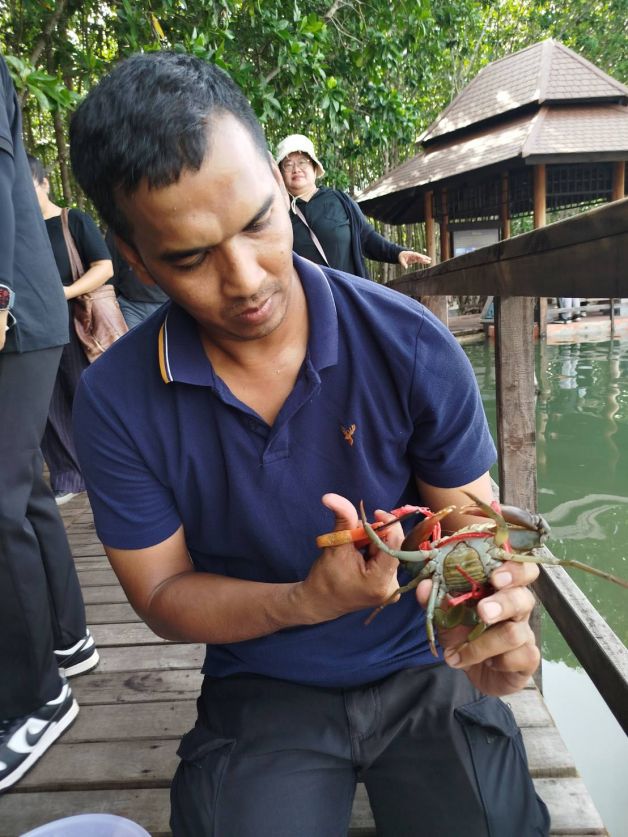 และไปสัมผัสกับความสมบูรณ์ของผืนป่าชายเลน ณ ศูนย์ศึกษาธรรมชาติป่าชายเลน ซึ่งเป็นพระราชดำริเริ่มแรกในการก่อตั้งศูนย์แห่งนี้ เพื่อฟื้นฟูป่าชายเลนที่เสื่อมโทรมอย่างหนัก ให้กลับมาเป็นแหล่งอนุบาลสัตว์น้ำวัยอ่อนและขยายพันธุ์ได้อย่างยั่งยืน ทั้งยังเป็นแหล่งเรียนรู้เชิงนิเวศที่สำคัญของประเทศ จากนั้นสื่อมวลชนได้ร่วมกันปล่อยพันธุ์สัตว์น้ำคืนสู่ทะเล และไปเยี่ยมชมงานเพาะเลี้ยงสาหร่ายทะเล ทั้งสาหร่ายพวงองุ่นและสาหร่ายผักกาดทะเล ที่ได้รับความนิยมในตลาดอาหารสุขภาพ ซึ่งสามารถเลี้ยงสาหร่ายร่วมกับสัตว์น้ำเศรษฐกิจ เช่น ปูทะเลและปลากระบอกดำ โดยบริหารจัดการฟาร์มเชิงนิเวศเป็นมิตรกับสิ่งแวดล้อม และเป็นต้นแบบอาชีพชุมชนที่ยั่งยืน