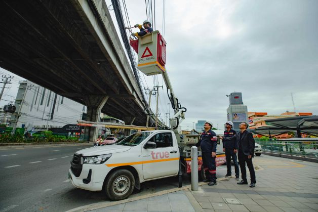 17 พฤศจิกายน 2568 ทรู คอร์ปอเรชั่น โดย นายกนกศักดิ์ นิ่มนวลรัตน์ (ขวา) หัวหน้าฝ่ายรัฐกิจและสาธารณูปโภค นำทีมวิศวกรลงพื้นที่ ร่วมกับการไฟฟ้านครหลวง (MEA) นำโดย นายราเชนทร์ อันเวช (ซ้าย) ผู้ช่วยผู้ว่าการบริการระบบจำหน่าย พร้อมภาคีเครือข่ายพันธมิตรที่เกี่ยวข้อง รื้อถอนและจัดระเบียบสายสื่อสาร พร้อมนำลงใต้ดินบนถนนรามคำแหง ช่วงแยกคลองตัน–แยกลำสาลี (ระยะทาง 5.80 กม.) โดยในเฟสแรกเร่งดำเนินการในช่วง ซอยรามคำแหง 24 - 26 ซึ่งเป็นเส้นทางสำคัญสู่ราชมังคลากีฬาสถาน หนึ่งในสนามแข่งขันซีเกมส์ ครั้งที่ 33 (9–20 ธันวาคม 2568) เพื่อยกระดับความปลอดภัยการสัญจรและทัศนียภาพเมืองให้เรียบร้อยสวยงาม สมศักดิ์ศรีเจ้าภาพระดับภูมิภาค ทั้งนี้ ทรู คอร์ปอเรชั่น เดินหน้าขับเคลื่อนภารกิจการจัดระเบียบสายสื่อสารและนำสายสื่อสารลงใต้ดินอย่างต่อเนื่องและเป็นระบบ เพื่อให้สอดคล้องกับนโยบายของภาครัฐ ภายใต้หลักธรรมาภิบาลและการพัฒนาโทรคมนาคมอย่างยั่งยืนควบคู่ความรับผิดชอบต่อสังคมโดยบูรณาการทำงานกับทุกภาคส่วน ตั้งแต่มาตรฐานทางเทคนิคจนถึงการปฏิบัติงานในพื้นที่จริง เพื่อผลักดันเมืองต้นแบบที่ครบทั้งโครงสร้างพื้นฐาน ความปลอดภัย ทัศนียภาพที่เป็นระเบียบ ทันสมัยและยกระดับคุณภาพชีวิตประชาชน สอดคล้องกับทิศทางการพัฒนาประเทศในระยะยาว