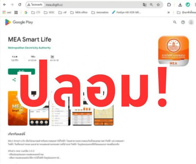 MEA หรือ การไฟฟ้านครหลวง ออกประกาศแจ้งเตือนภัยทางไซเบอร์ระดับเร่งด่วน หลังศูนย์เฝ้าระวังความมั่นคงปลอดภัยไซเบอร์ (CSOC) ของ MEA ตรวจพบกลุ่มมิจฉาชีพจัดทำ “เว็บไซต์ปลอม” โดยออกแบบหน้าเว็บไซต์เลียนแบบ Google Play Store เพื่อหลอกลวงให้ประชาชนดาวน์โหลดแอปพลิเคชัน MEA Smart Life ปลอม หวังจารกรรมข้อมูลส่วนบุคคลและทรัพย์สิน