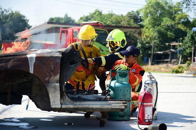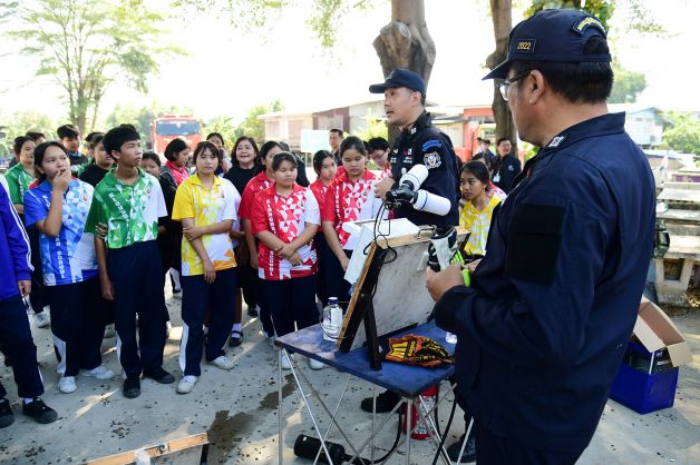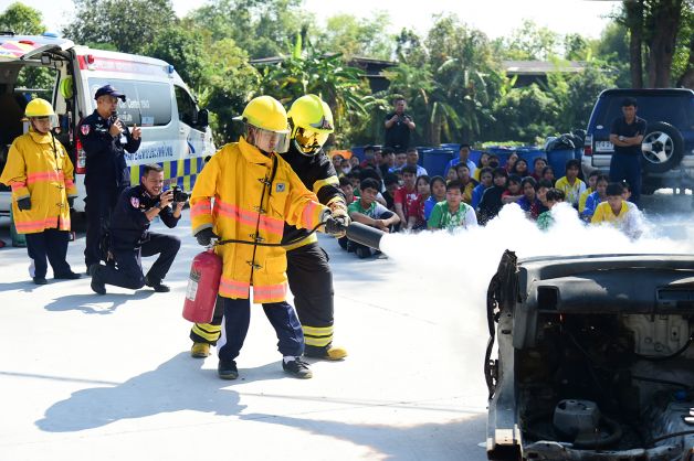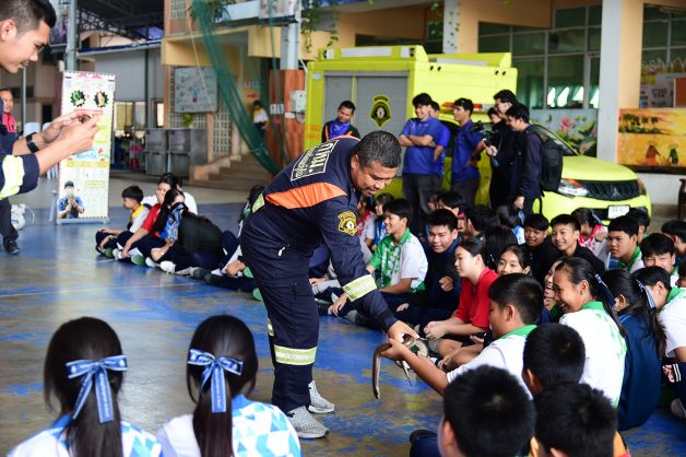 “การทางพิเศษฯ ได้นำทางพิเศษฉลองรัชเข้าสู่ระบบการจัดการสิ่งแวดล้อม ISO 14001 มาตั้งแต่ปี พ.ศ. ๒๕๔๒ จนถึงปัจจุบัน ข้อกำหนดมาตรฐานของระบบการจัดการสิ่งแวดล้อม ISO 14001 : 2015 ได้กำหนดให้การทางพิเศษฯ ทำการฝึกซ้อมการป้องกันและระงับอัคคีภัยใต้ทางพิเศษ อย่างน้อยปีละ 1 ครั้ง เพื่อเป็นการเตรียมความพร้อมของเจ้าหน้าที่ที่เกี่ยวข้อง และหน่วยงานใกล้เคียง ในการรองรับหากเกิดอัคคีภัยใต้ทางพิเศษ หรือในชุมชนใกล้เคียง แสดงให้เห็นว่าการทางพิเศษฯ กับชุมชนรอบเขตทางพิเศษมีความร่วมมือที่ดีต่อกัน และหวังว่ากิจกรรมในวันนี้จะช่วยเสริมสร้างความสัมพันธ์ที่ดีระหว่างการทางพิเศษฯ และชุมชนรอบเขตทางพิเศษ ก่อให้เกิดความเข้าใจที่ดีและช่วยเหลือซึ่งกันและกัน ลดพื้นที่เสี่ยงเพื่อให้ชุมชนช่วยกันดูแลพื้นที่รอบเขตทางพิเศษ โดยการทางพิเศษฯ ก็จะจัดกิจกรรมดี ๆ อย่างนี้ต่อไป” นางกุลกัญญาฯ กล่าวในท้ายที่สุด.jpg)