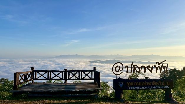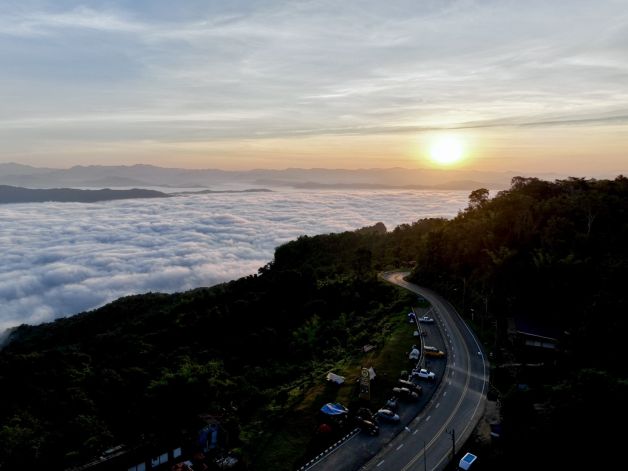 อุ่น ๆ ท่ามกลางลมหนาว โดยมีเบื้องหน้าเป็นทะเลหมอกสีขาว คล้ายผ้านวมขนาดใหญ่ที่ห่มคลุมหุบเขา
