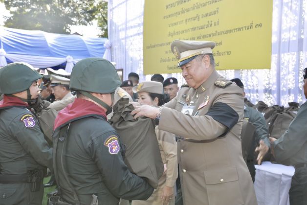 ช่วงบ่าย องคมนตรี พร้อมด้วยคณะ และเจ้าหน้าที่มูลนิธิราชประชานุเคราะห์ ในพระบรมราชูปถัมภ์ เดินทางไปยังกองร้อยตำรวจตระเวนชายแดน 327 ตำบลแม่จัน อำเภอแม่จัน จังหวัดเชียงราย เพื่อเชิญถุงพระราชทานจากพระบาทสมเด็จพระเจ้าอยู่หัว และสมเด็จพระนางเจ้า ฯ พระบรมราชินี มอบให้แก่ผู้ปฏิบัติงานหน่วยงานความมั่นคง 2 หน่วย ประกอบด้วย กำลังพลตำรวจตระเวนชายแดนที่ 327 จำนวน 40 ถุง และกำลังพลหน่วยเฉพาะกิจกรมทหารพรานที่ 31 จำนวน 45 ถุง โอกาสนี้ องคมนตรีเชิญพระราชกระแสความห่วงใยของพระบาทสมเด็จพระเจ้าอยู่หัว ไปกล่าวเพื่อสร้างขวัญและกำลังใจในการปกป้องอธิปไตยในพื้นที่ชายแดน ต่อไป