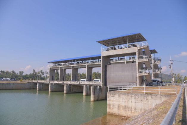 จากนั้นเยี่ยมชมโครงการประตูระบายน้ำปลายคลองบางสะพานอันเนื่องมาจากพระราชดำริ ตำบลแม่รำพึง อำเภอบางสะพาน ซึ่งประตูระบายน้ำมีขนาดกว้าง 10 เมตร สูง 6 เมตร จำนวน 6 ช่อง อัตราการระบายน้ำสูงสุด 700 ลูกบาศก์เมตรต่อวินาที ทำหน้าที่ควบคุมบรรเทาอุทกภัยในพื้นที่ชุมชนตัวเมืองอำเภอบางสะพาน ทำให้พื้นที่น้ำท่วมลดลง 4,894 ไร่ ครัวเรือนได้รับผลกระทบจากน้ำท่วมลดลงถึง 1,640 ครัวเรือน มูลค่าความเสียหายลดลง 42.15 ล้านบาท
