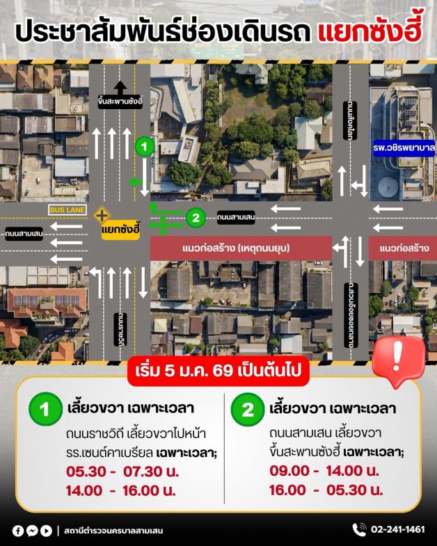 การรถไฟฟ้าขนส่งมวลชนแห่งประเทศไทย (รฟม.) แจ้งประชาสัมพันธ์การจัดการจราจรล่าสุดบนถนนสามเสน บริเวณแยกซังฮี้ พร้อมจัดรถเสริม Feeder ให้บริการรับ-ส่ง จากรถไฟฟ้ามหานคร สายเฉลิมรัชมงคล (MRT สายสีน้ำเงิน) สถานีสิรินธร ไปยังหน้าสมาคมศิษย์เก่าเซนต์คาเบรียล และโรงพยาบาลวชิรพยาบาล เพื่ออำนวยความสะดวกในการเดินทางให้แก่ประชาชนในระหว่างการใช้พื้นที่ในการก่อสร้างบริเวณถนนสามเสน