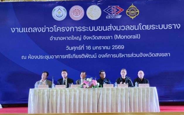 นายฉัตรเพชร ครุอำโพธิ์ รองนายก อบจ.สงขลา เปิดเผยถึงความเป็นมาของโครงการระบบขนส่งมวลชนโดยระบบราง อ.หาดใหญ่ จ.สงขลา ซึ่งเป็นหนึ่งในแผนการพัฒนาระบบคมนาคมในท้องถิ่นของ อบจ.สงขลา ด้วยแนวคิดที่จะนำระบบรถไฟฟ้าโมโนเรลแบบคร่อมรางเข้ามาใช้เพื่อยกระดับการเดินทางให้แก่ประชาชน และได้ร่วมมือกับสำนักวิจัยและบริการวิทยาศาสตร์และเทคโนโลยี มหาวิทยาลัยเทคโนโลยีพระจอมเกล้าธนบุรี ในการศึกษาออกแบบโครงการฯ เบื้องต้นได้กำหนดแนวเส้นทางเริ่มต้นจากแยกคลองหวะ มุ่งไปตามแนวถนนกาญจนวนิชจนถึงแยกคอหงส์ และมุ่งต่อไปตามแนวถนนเพชรเกษมจนถึงสถานีรถตู้ ระยะทางรวม 12.54 กิโลเมตร มีสถานีจำนวน 12 สถานี โดยมีโรงจอดและศูนย์ซ่อมบำรุง 1 แห่ง ที่สถานีคลองหวะ และมีจุดเปลี่ยนถ่ายรูปแบบการขนส่ง 3 แห่ง ที่สถานีคลองหวะ สถานีคอหงส์ และสถานีรถตู้ อย่างไรก็ตาม เนื่องจากสำนักงบประมาณเห็นควรให้หารือกับ รฟม. กรมการขนส่งทางราง และกระทรวงคมนาคมที่มีภารกิจและหน้าที่โดยตรงด้านการพัฒนาระบบราง อบจ.สงขลา จึงได้เสนอเรื่องดังกล่าวไปยังกระทรวงคมนาคม และต่อมา คณะกรรมการจัดระบบการจราจรทางบก ในคราวประชุม เมื่อวันที่ 3 ธันวาคม 2568 ได้มีมติมอบหมายให้ รฟม. เป็นผู้รับผิดชอบในการดำเนินโครงการฯ จึงนำมาสู่การประชุมหารือข้อมูลร่วมกันในวันนี้