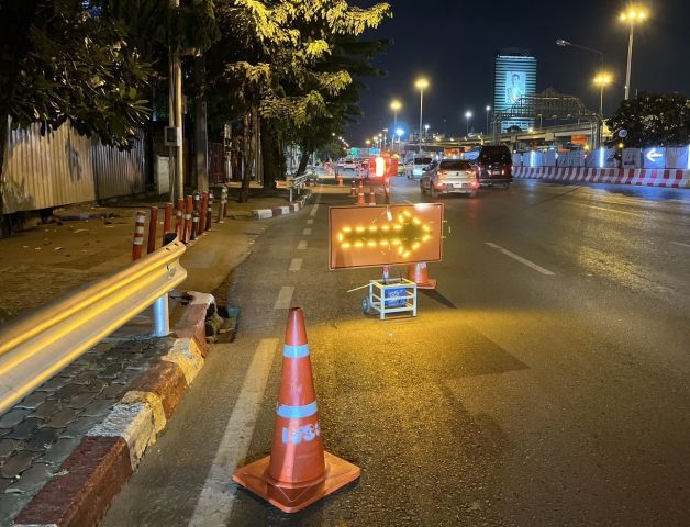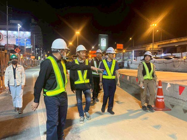 การรถไฟฟ้าขนส่งมวลชนแห่งประเทศไทย (รฟม.) โดยสำนักงานความปลอดภัย อาชีวอนามัยและสภาพแวดล้อมในการทำงาน (สปอ.) ลงพื้นที่ตรวจสอบการดำเนินงานด้านความปลอดภัยในการก่อสร้าง โครงการรถไฟฟ้าสายสีส้ม ช่วงบางขุนนนท์ – ศูนย์วัฒนธรรมแห่งประเทศไทย ช่วงเวลากลางคืน (Night Audit) โดยลงพื้นที่บริเวณสถานีบางขุนนนท์ สถานีศิริราช สถานีอนุสาวรีย์ประชาธิปไตย สถานีราชปรารภ สถานีดินแดง และบริเวณอาคารปล่องระบายอากาศที่ 6 โดยได้ตรวจสอบการติดตั้งแผงผ้าใบ ไฟส่องสว่าง ไฟสัญญาณเตือน และป้ายเตือนต่าง ๆ ตามแนวเขตก่อสร้าง ให้มั่นคงแข็งแรง อยู่ในตำแหน่งที่ปลอดภัย สามารถเห็นได้อย่างชัดเจน การเก็บวัสดุอุปกรณ์ที่ไม่ใช้แล้วให้เรียบร้อย การจัดวางแนวแบริเออร์ (Barriers) โดยแนวแบริเออร์จะต้องอยู่ภายในเขตพื้นที่ที่กำหนดเพื่อไม่ให้ล้ำเข้าพื้นผิวจราจร ซึ่งเป็นการป้องกันอุบัติเหตุที่อาจเกิดขึ้นจากการใช้ถนน ในบริเวณดังกล่าว พร้อมกำชับให้เจ้าหน้าที่ทุกคนสวมใส่อุปกรณ์คุ้มครองความปลอดภัยส่วนบุคคลให้ครบถ้วนตลอดระยะเวลาที่ปฏิบัติงาน และปฏิบัติตามมาตรฐานความปลอดภัยที่กำหนดอย่างเคร่งครัด
