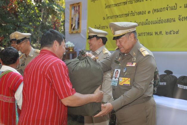 เมื่อวันอังคารที่ 27 มกราคม 2569 เวลาประมาณ 9.00 น. นายพลากร สุวรรณรัฐ องคมนตรี ประธานอนุกรรมการติดตามและขับเคลื่อนโครงการอันเนื่องมาจากพระราชดำริในพื้นที่ภาคเหนือ นายศุภรัชต์ อินทราวุธ รองเลขาธิการ กปร. พร้อมด้วย เจ้าหน้าที่มูลนิธิราชประชานุเคราะห์ ในพระบรมราชูปถัมภ์ ที่ปรึกษาคณะอนุกรรมการฯ และคณะอนุกรรมการฯ เดินทางไปยังโครงการพระราชดำริปางตอง 3 (หมอกจำแป่-แม่สะงา) บ้านห้วยขาน ตำบลหมอกจำแป่ อำเภอเมืองแม่ฮ่องสอน จังหวัดแม่ฮ่องสอน เพื่อเชิญสิ่งของพระราชทานจากพระบาทสมเด็จพระเจ้าอยู่หัว และสมเด็จพระนางเจ้า ฯ พระบรมราชินี ไปมอบแก่ราษฎรและผู้ปฏิบัติงานในพื้นที่โครงการ ได้แก่ เสื้อกันหนาวสำหรับเด็ก จำนวน 102 ตัว และถุงพระราชทาน จำนวน 128 ถุง