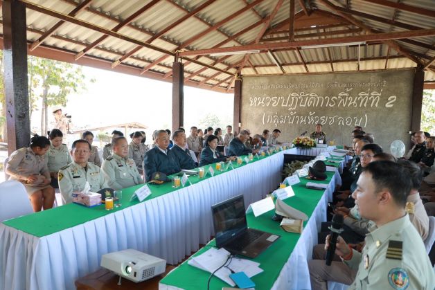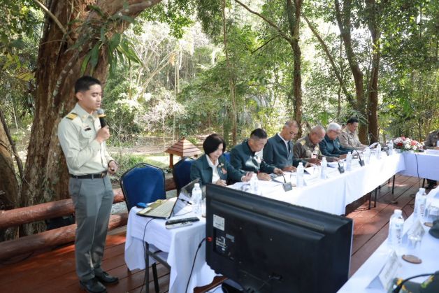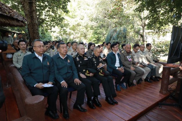 จากนั้นคณะฯ รับฟังบรรยายสรุปผลการดำเนินงานโครงการพระราชดำริปางตอง 3 ซึ่งได้ดำเนินงานตามแนวพระราชดำริของสมเด็จพระนางเจ้าสิริกิติ์ พระบรมราชินีนาถ พระราชชนนีพันปีหลวง ในการปลูกป่าทดแทน และส่งเสริมการปลูกหวาย ผลสัมฤทธิ์จากการดำเนินงานโครงการฯ ตั้งแต่ปี 2549 ได้ฟื้นฟูสภาพป่าและปรับปรุงระบบนิเวศ โดยการปลูกป่าทั่วไป ปลูกไม้ใช้สอย และการปลูกป่าหวาย รวมเนื้อที่กว่า 22,900 ไร่ ทำให้ระบบนิเวศมีความอุดมสมบูรณ์ ลำน้ำที่สำคัญในพื้นที่มีน้ำไหลตลอดทั้งปีเอื้อประโยชน์ต่อการทำเกษตร ราษฎรสามารถพึ่งตนเองได้อย่างเหมาะสมและยั่งยืน รวมทั้งสร้างจิตสำนึกในการอนุรักษ์ทรัพยากรป่าไม้โดยใช้แนวทางครูป่าไม้ในการถ่ายทอดความรู้เพื่อปลูกฝังจิตสำนึกให้แก่เยาวชน จากนั้นรับฟังการบริหารจัดการอาคารสถานที่ของโครงการอันเนื่องมาจากพระราชดำริ จังหวัดแม่ฮ่องสอน จำนวน 4 โครงการ ได้แก่ โครงการศูนย์บริการและพัฒนาที่สูงปางตองตามพระราชดำริ โครงการพระราชดำริปางตอง 2 (ปางอุ๋ง) โครงการพัฒนาพื้นที่เฉพาะลุ่มน้ำปาย (ท่าโป่งแดง) และศูนย์ศิลปาชีพจังหวัดแม่ฮ่องสอนในพระบรมราชินูปถัมภ์ (ศูนย์บริการและพัฒนาลุ่มน้ำปายตามพระราชดำริ จังหวัดแม่ฮ่องสอน) พร้อมกับได้มีข้อเสนอแนวทางการส่งมอบอาคารให้ถูกต้องตามระเบียบและหลักเกณฑ์ เพื่อหน่วยงานได้เข้าไปใช้ให้เกิดประโยชน์สูงสุด จากนั้น องคมนตรีได้ปลูกต้นไทรย้อยใบแหลมและปล่อยเขียดแลวคืนสู่ธรรมชาติ