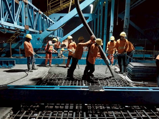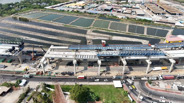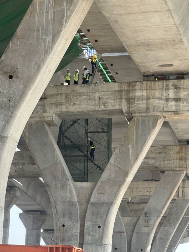 ในส่วนของการเทคอนกรีตเชื่อมต่อโครงสร้างสะพานคานยื่น (Balanced Cantilever) ช่วงข้ามแม่น้ำท่าจีนที่ยังไม่บรรจบกันจำนวน 3 จุด ยังคงเดินหน้าตามแผนภายใต้มาตรการความปลอดภัยอย่างเคร่งครัด เนื่องจากปัจจุบันโครงสร้างสะพานฯ ถูกทิ้งค้างไว้ในรูปแบบ “คานยื่นอิสระ” และใช้นั่งร้านชั่วคราวขนาดใหญ่ทำหน้าที่แบกรับน้ำหนักอยู่ จึงจำเป็นต้องเร่งเทคอนกรีตเชื่อมต่อโครงสร้างสะพานส่วนยื่น (Closure) ให้บรรจบอย่างสมบูรณ์ เพื่อให้การรับน้ำหนักและถ่ายแรงเป็นไปตามการออกแบบด้านวิศวกรรม และสามารถรื้อถอนโครงสร้างนั่งร้านชั่วคราวที่มีความเสี่ยงสูงออกจากพื้นที่ก่อสร้าง และเปิดช่องทางหลักช่วงสะพานข้ามแม่น้ำท่าจีนเพิ่มเติมได้ โดยล่าสุดจนถึง 31 มกราคม 2569 ได้ดำเนินการเทคอนกรีตเชื่อมสะพานและดึงลวดแล้วเสร็จ 1 จุด (ตำแหน่ง M3) สำหรับแผนการดำเนินงานในสัปดาห์หน้า จะเริ่มดำเนินการอีก 2 จุดที่เหลือ (ตำแหน่ง M4 และ M5)