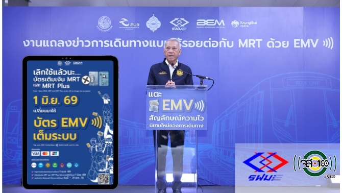 วันนี้ (27 กุมภาพันธ์ 2569) นายพิพัฒน์ รัชกิจประการ รองนายกรัฐมนตรีและรัฐมนตรีว่าการกระทรวงคมนาคม พร้อมด้วย นายกาจผจญ อุดมธรรมภักดี ผู้ว่าการการรถไฟฟ้าขนส่งมวลชนแห่งประเทศไทย (รฟม.) นายอนวัช สุวรรณฤทธิ์ รองกรรมการผู้จัดการ บริษัท ทางด่วนและรถไฟฟ้ากรุงเทพ จำกัด (มหาชน) (BEM) และ นายธวัชชัย ชีวานนท์ ประธานผู้บริหาร Product & Business Solutions ธนาคารกรุงไทย จำกัด ร่วมแถลงข่าว “การเดินทางแบบไร้รอยต่อกับ MRT ด้วย EMV Contactless” บัตรใบเดียวที่ตอบโจทย์ได้ครบครัน ทั้งด้านเทคโนโลยีความปลอดภัยระดับสากลและด้านความสะดวกสบาย ให้ผู้ถือบัตรมาตรฐาน EMV Contactless ใช้เดินทางได้ในระบบรถไฟฟ้ามหานคร หรือ รถไฟฟ้า M RT ทั้ง 4 สาย ในการกำกับของ รฟม. ได้ทันที พร้อมกันนี้ ทาง BEM บริษัทผู้ให้บริการเดินรถไฟฟ้ามหานคร สายเฉลิมรัชมงคล (MRT สายสีน้ำเงิน) และสายฉลองรัชธรรม (MRT สายสีม่วง) ยังเดินหน้าขานรับนโยบายตั๋วร่วมของภาครัฐ ตั้งเป้าหมายยกระดับระบบจัดเก็บค่าโดยสารอัตโนมัติ (AFC Migration Plan) ไปสู่ระบบ Account Based Ticketing (ABT) ที่สามารถรองรับรูปแบบการชำระเงินประเภท Open-Loop System ด้วยบัตรมาตรฐาน EMV Contactless อย่างเต็มรูปแบบ ตั้งแต่วันที่ 1 มิถุนายน 2569 เป็นต้นไป เพื่อร่วมส่งเสริมและจูงใจผู้ใช้บริการรถไฟฟ้าเลือกถือบัตรมาตรฐาน EMV Contactless เพียงใบเดียวในการเดินทางแบบไร้รอยต่อ