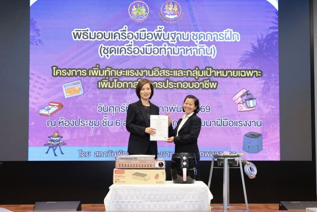 วันที่ 27 กุมภาพันธ์ 2569 ที่ห้องประชุม ชั้น 6 อาคาร DSD กรมพัฒนาฝีมือแรงงาน นางสาวตรีนุช เทียนทอง รมว.แรงงงาน เป็นประธานพิธีมอบเครื่องมือพื้นฐานชุดการฝึก (ชุดเครื่องมือทำกิน) ประจำปีงบประมาณ พ.ศ. 2569 โดยมี นายสมาสภ์ ปัทมะสุคนธ์ อธิบดีกรมพัฒนาฝีมือแรงงาน และผู้บริหารกระทรวงแรงงาน เข้าร่วม
