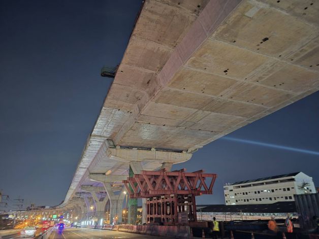 ขณะที่ตอนที่ 7 แม้จะสามารถคืนผิวจราจร ถ.พระราม 2 ทางราบในช่วงกลางวันเป็นการชั่วคราวแล้ว แต่ในส่วนงานโครงสร้างยกระดับยังมีงานติดตั้ง Segment ในส่วนที่เหลืออีกไม่มาก จำเป็นต้องดำเนินการให้แล้วเสร็จ ปัจจุบันอยู่ระหว่างกระบวนการจะเข้าทำการทดสอบความแข็งแรงของโครงสร้าง (Load Test) อย่างละเอียด เพื่อประเมินความพร้อมและมาตรฐานความปลอดภัย พร้อมทั้งการเตรียมทางเบี่ยงการจราจร ก่อนที่จะเริ่มยกติดตั้ง Segment ในส่วนที่เหลือตามขั้นตอนต่อไป