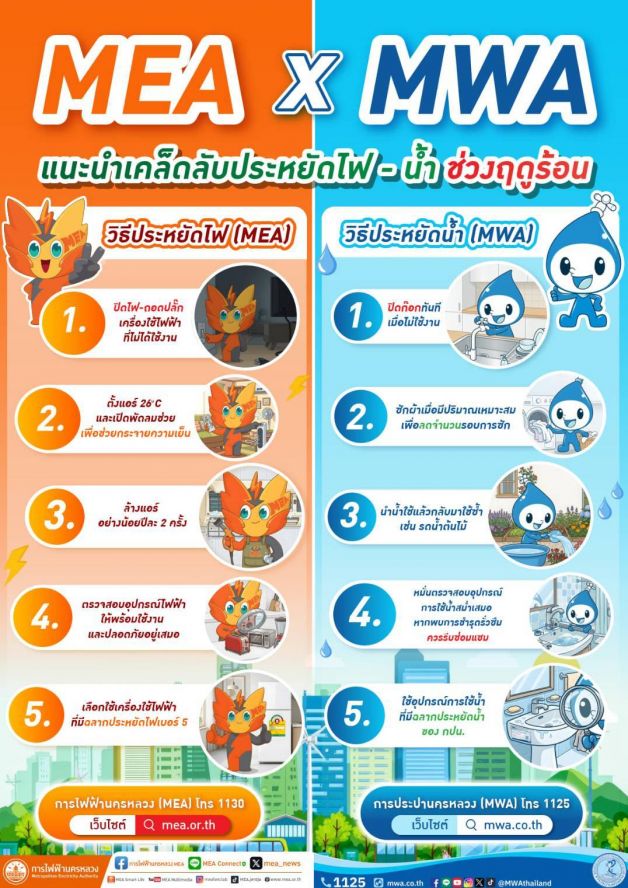 ทั้งนี้ หากประชาชนพบเห็นสายไฟฟ้าหรืออุปกรณ์ไฟฟ้าของ MEA ชำรุด หรืออยู่ในสภาพที่ไม่ปลอดภัย หรือแจ้งเหตุไฟฟ้าขัดข้อง สามารถแจ้งเจ้าหน้าที่ MEA ได้ทุกเขต หรือแจ้งผ่านช่องทางโซเชียลมีเดียต่าง ๆ ของ MEA ได้ที่ Line: MEA Connect (@MEAthailand) สัญลักษณ์โล่สีเขียวนำหน้าชื่อบัญชีทางการ เลือกเมนู ติดต่อ MEA Call Center Online 1130 ศูนย์บริการข้อมูลผู้ใช้ไฟฟ้าการไฟฟ้านครหลวง และติดตามข่าวสารงานบริการของ MEA ผ่านทางเว็บไซต์ www.mea.or.th
