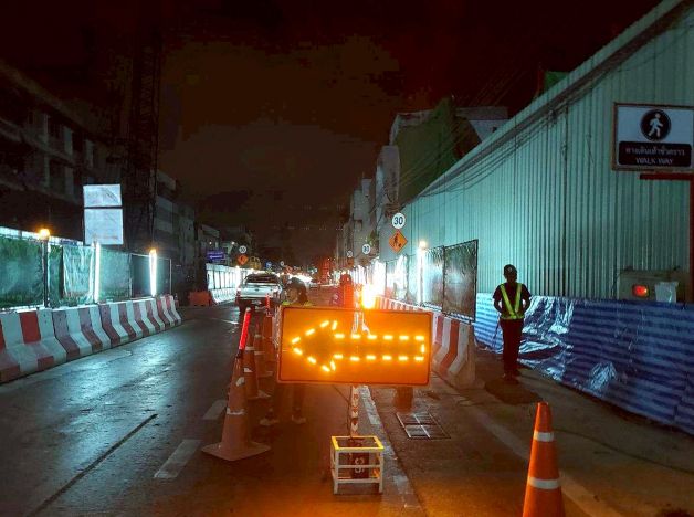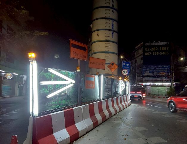 การรถไฟฟ้าขนส่งมวลชนแห่งประเทศไทย (รฟม.) โดยสำนักงานความปลอดภัย อาชีวอนามัยและสภาพแวดล้อมในการทำงาน (สปอ.) ลงพื้นที่ตรวจสอบการดำเนินงานด้านความปลอดภัยในการก่อสร้าง โครงการรถไฟฟ้าสายสีส้ม ช่วงบางขุนนนท์ – ศูนย์วัฒนธรรมแห่งประเทศไทย ช่วงเวลากลางคืน (Night Audit) โดยลงพื้นที่บริเวณสถานีอนุสาวรีย์ประชาธิปไตย สถานีหลานหลวง สถานียมราช สถานีราชเทวี สถานีประตูน้ำ และสถานีราชปรารภ โดยได้ตรวจสอบการติดตั้งแผงผ้าใบ ไฟส่องสว่าง ไฟสัญญาณเตือน และป้ายเตือนต่าง ๆ ตามแนวเขตก่อสร้าง ให้มั่นคงแข็งแรง อยู่ในตำแหน่งที่ปลอดภัย สามารถเห็นได้อย่างชัดเจน การเก็บวัสดุอุปกรณ์ที่ไม่ใช้แล้วให้เรียบร้อย การจัดวางแนวแบริเออร์ (Barriers) ให้เป็นระเบียบไม่ให้ล้ำเข้าพื้นผิวจราจร ซึ่งเป็นการป้องกันอุบัติเหตุที่อาจเกิดขึ้นจากการใช้ถนนในบริเวณดังกล่าว พร้อมกำชับให้เจ้าหน้าที่ทุกคนสวมใส่อุปกรณ์คุ้มครองความปลอดภัยส่วนบุคคลให้ครบถ้วนตลอดระยะเวลาที่ปฏิบัติงาน และปฏิบัติตามมาตรฐานความปลอดภัยที่กำหนดอย่างเคร่งครัด