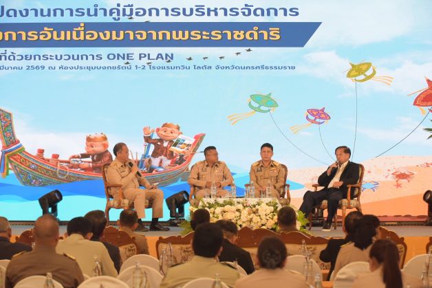 วันพุธที่ 25 มีนาคม 2569 เวลา 10.40 น. ณ โรงแรมทวิน โลตัส อำเภอเมืองนครศรีธรรมราช นายพลากร สุวรรณรัฐ องคมนตรี ประธานกรรมการติดตามและขับเคลื่อนโครงการอันเนื่องมาจากพระราชดำริ นางสุพร ตรีนรินทร์ เลขาธิการ กปร. พร้อมด้วยคณะที่ปรึกษาอนุกรรมการฯ และคณะอนุกรรมการฯ เยี่ยมชมนิทรรศการการประสานแผนพัฒนาพื้นที่ด้วยกระบวนการ One Plan ในการขับเคลื่อนโครงการอันเนื่องมาจากพระราชดำริ จาก 2 จังหวัดนำร่อง พื้นที่ภาคใต้ ได้แก่ จังหวัดนราธิวาสและจังหวัดนครศรีธรรมราช