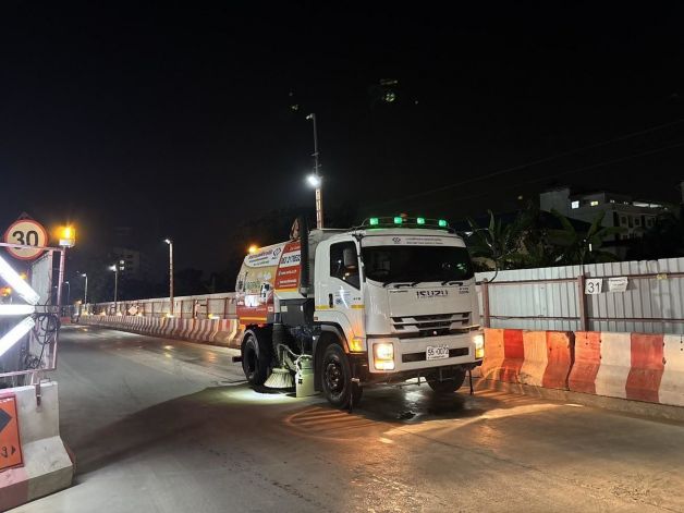 การรถไฟฟ้าขนส่งมวลชนแห่งประเทศไทย (รฟม.) โดย กองสิ่งแวดล้อม ฝ่ายพัฒนาโครงการรถไฟฟ้า ลงพื้นที่ตรวจสอบและติดตามการดำเนินงานลดผลกระทบด้านสิ่งแวดล้อมในช่วงเวลากลางคืน การก่อสร้างโครงการรถไฟฟ้าสายสีส้ม ช่วงบางขุนนนท์ - ศูนย์วัฒนธรรมแห่งประเทศไทย โดยเริ่มตั้งแต่บริเวณจุดก่อสร้างสถานีบางขุนนนท์ บริเวณถนนเลียบทางรถไฟ รวมถึงตลอดแนวก่อสร้างถนนราชินี ถนนเพชรบุรี ถนนราชดำเนินกลาง ถนนหลานหลวง ถนนราชปรารภ ถนนดินแดง ถนนวิภาวดีรังสิต เข้าสู่ชุมชนประชาสงเคราะห์ จนมาถึงถนนรัชดาภิเษกด้านหน้าห้างเอสพลานาด