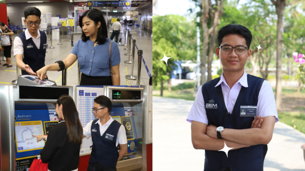 การเดินทางของความฝัน เริ่มต้นจาก “โอกาส” น้องบอย-นายสมศักดิ์ สิงห์ซอม นักเรียนชั้นมัธยมศึกษาปีที่ 6 โรงเรียนวัดราชบพิธ สะท้อนความมุ่งมั่นไม่ยอมแพ้ต่อข้อจำกัดของชีวิตว่า “เป็นปีที่ 2 ที่ผมได้เข้าร่วมโครงการ และยังมีโอกาสเป็นเทรนเนอร์บทบาทหน้าที่ของอาสาสมัครในสถานีรถไฟฟ้า MRT ให้กับเพื่อนๆ ประสบการณ์การทำงานช่วยให้ผมมีความรับผิดชอบ วินัย และพัฒนาทักษะการสื่อสาร ซึ่งค่าตอบแทนที่ผมได้รับจากโครงการ เก็บออมจนเป็นทุนเรียนพิเศษ และสามารถสอบติดถึง 3 มหาวิทยาลัย ผมตัดสินใจเลือกเรียนคณะศิลปกรรมศาสตร์ จุฬาฯ เพราะสนใจด้านกราฟิกมาตั้งแต่เด็ก และอยากเห็นผลงานของตัวเองบนป้ายโฆษณาต่างๆ ต้องขอบคุณ BEM ที่มอบโอกาสดีเช่นนี้ หากวันนั้นผมไม่ได้เข้าร่วม ก็อาจจะไม่มีโอกาสสอบติดมหาวิทยาลัยก็ได้” หนึ่งในเมล็ดพันธุ์เล็ก ๆ ที่เริ่มเติบโตสู่เส้นทางแห่งความฝันและค้นพบแสงขอบฟ้าของตนเอง พื้นที่ในสถานี MRT ไม่ใช่เพียงทางผ่านของการเดินทาง แต่คือจุดเริ่มต้นของการต่อยอดสู่เส้นทางอาชีพในโลกความเป็นจริง