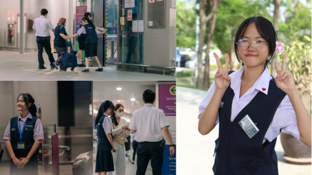 น้องน้ำชา-นางสาวสรชา กังวะโล นักเรียนชั้นมัธยมศึกษาปีที่ 6 จากโรงเรียนเตรียมอุดมศึกษาน้อมเกล้ากุนนที ผู้ถ่ายทอดเรื่องราวของการเติบโตทั้งความคิด ทัศนคติ และความหวังที่ชัดเจนขึ้นในชีวิตว่า “การเป็นส่วนหนึ่งของโครงการทำให้ได้เรียนรู้ทักษะการทำงาน การดูแลช่วยเหลือผู้อื่น ฝึกวินัยและความตรงต่อเวลา รวมถึงการแก้ไขปัญหาเฉพาะหน้า อีกทั้งยังได้ความรู้เกี่ยวกับเส้นทางรถไฟฟ้า MRT เพิ่มมากขึ้น สิ่งที่ประทับใจที่สุดคือคำขอบคุณจากผู้โดยสาร ซึ่งทำให้รู้สึกภูมิใจและมีกำลังใจในการทำงาน ในอนาคตมีความฝันอยากเรียนแพทย์ เพราะอยากทำงานที่ได้ช่วยเหลือผู้คน ตอนนี้จะตั้งใจเก็บเงินจากการทำงานเพื่อไปเข้าค่ายเตรียมความรู้ต่อไป”