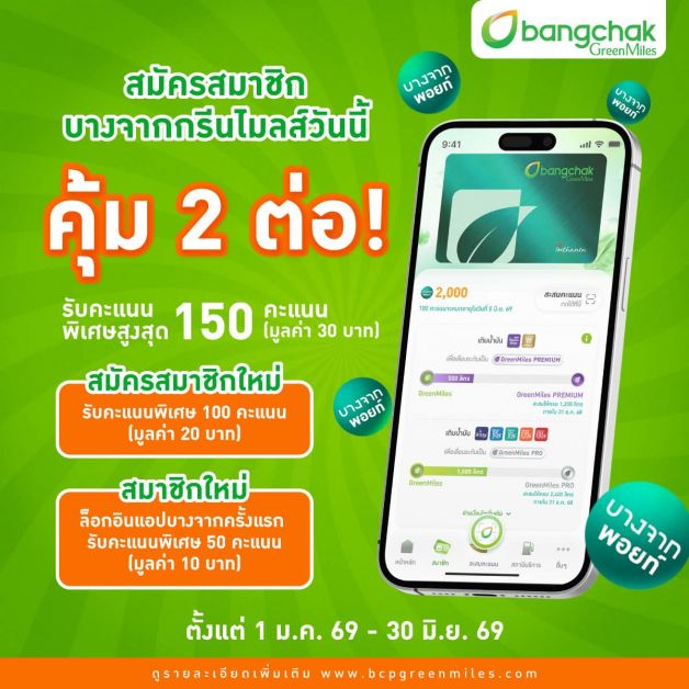 ท่ามกลางวิกฤตพลังงานที่ราคาน้ำมันปรับเพิ่มขึ้นอย่างต่อเนื่อง บริษัท บางจาก คอร์ปอเรชั่น จำกัด (มหาชน) ยังคงยึดมั่นในสิ่งที่ได้สื่อสารไว้กับผู้บริโภค ด้วยแคมเปญ “ขึ้นเท่าไหร่ คืนเท่านั้น” แม้ในหลายช่วง ราคาน้ำมันจะปรับขึ้นในระดับหลายบาท และบางครั้งสูงถึง 6 บาทต่อครั้ง เพื่อให้สมาชิกบางจากกรีนไมลส์สามารถเติมน้ำมันในวันถัดไปได้ในราคาเดียวกับก่อนการปรับขึ้น สมาชิกที่เติมน้ำมันในวันแรกของการปรับราคา จะชำระเงินตามราคาจริง และได้รับพอยท์คืนเทียบเท่าส่วนต่างของราคาที่เพิ่มขึ้นเพื่อนำไปใช้ต่อได้ ทำให้ค่าใช้จ่ายในการเติมน้ำมันยังคงเทียบเท่าราคาเดิมก่อนการปรับขึ้น โดยตั้งแต่ต้นเดือนมีนาคมที่ผ่านมา บางจากฯ ได้ช่วยแบ่งเบาภาระของสมาชิกกว่า 1.8 ล้านราย ครอบคลุมปริมาณการใช้รวมกว่า 97 ล้านลิตร คิดเป็นมูลค่ากว่า 190 ล้านบาท ซึ่งบริษัทฯ เป็นผู้รับภาระต้นทุนในส่วนนี้โดยตรง เพื่อช่วยบรรเทาภาระค่าใช้จ่ายของผู้บริโภค ทั้งนี้ บางจากฯ เป็นผู้ให้บริการรายเดียวที่ดำเนินแนวทางนี้เพื่อดูแลสมาชิก