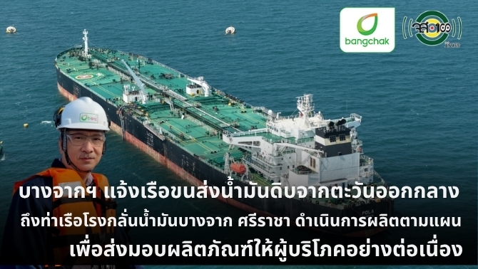 บริษัท บางจาก คอร์ปอเรชั่น จำกัด (มหาชน) เปิดเผยว่า เรือบรรทุกน้ำมันดิบจากตะวันออกกลางได้เดินทางถึงท่าเรือโรงกลั่นน้ำมัน บางจาก ศรีราชา ด้วยความปลอดภัย และกำลังนำส่งน้ำมันดิบเพื่อเตรียมพร้อมเข้าสู่กระบวนการกลั่น ส่งมอบผลิตภัณฑ์ให้ผู้บริโภคอย่างต่อเนื่อง การขนส่งครั้งนี้เป็นส่วนหนึ่งของการจัดหาน้ำมันดิบตามแผนงานของบริษัทฯ โดยเรือลำดังกล่าวได้ผ่านช่องแคบฮอร์มุซอย่างปลอดภัยและเดินทางถึงท่าเรือโรงกลั่นน้ำมันบางจาก ศรีราชา เมื่อคืนวันที่ 7 เมษายน ที่ผ่านมา ช่วยให้การจัดหาน้ำมันดิบสามารถดำเนินไปได้อย่างเหมาะสม ท่ามกลางสถานการณ์ที่ผันผวน ซึ่งน้ำมันดิบจากแหล่งตะวันออกกลางที่บรรทุกมาในเรือลำนี้ มีปริมาณประมาณ 700,000 บาร์เรล สำหรับการขนส่งและการส่งมอบน้ำมันดิบสำหรับกระบวนการกลั่นของโรงกลั่นทั้งสองของบริษัทฯ ได้แก่ โรงกลั่นน้ำมันบางจาก พระโขนง และโรงกลั่นน้ำมันบางจาก ศรีราชา ยังเป็นไปตามแผนงานที่วางไว้ ณ ปัจจุบัน บริษัทฯ มีปริมาณน้ำมันดิบสำรองรองรับการผลิตได้ประมาณ 2 เดือน ขณะที่ยังคงติดตามสถานการณ์อย่างใกล้ชิด เพื่อให้การดำเนินงานจัดหาพลังงานและการส่งมอบผลิตภัณฑ์เป็นไปอย่างเหมาะสม และพร้อมสนับสนุนนโยบายภาครัฐในการปฏิบัติตามมาตรการต่าง ๆ ภายใต้สถานการณ์ที่ยังมีความผันผวน